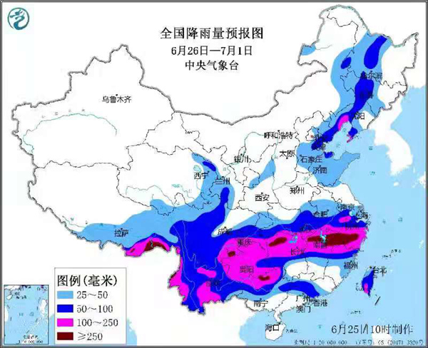 中央气象台预计,6月26日至7月1日,我国南方地区将出现入汛以来最强降雨过程,此轮降雨具有雨区覆盖面积广、降雨持续时间长、累计雨量大、局地雨势强等特点。