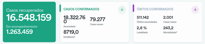 截至当地时间6月25日18时30分,根据巴西卫生部发布的数据,巴西累计新冠肺炎确诊病例18322760例,较前一日新增79277例;累计死亡病例511142例,较前一日新增2001例;累计康复病例16548159例。
