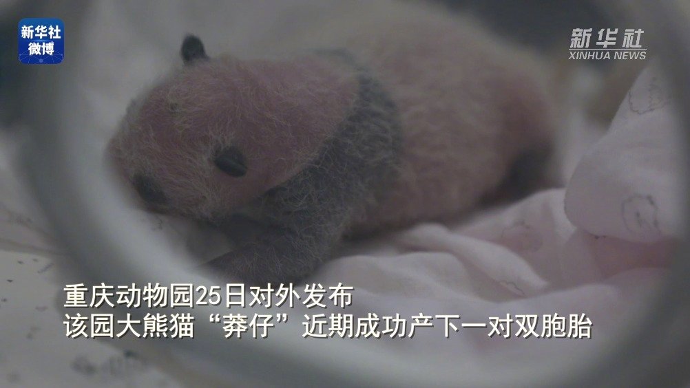 【#重庆动物园大熊猫产下双胞胎#】重庆动物园大熊猫“莽仔”近日产下一对雄性双胞胎,这是#2021年全球首对新生大熊猫双胞胎#,也是今年国内圈养大熊猫首例产仔。目前,两只幼仔发育良好。 新华社的微博视频