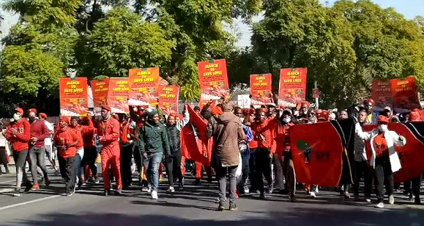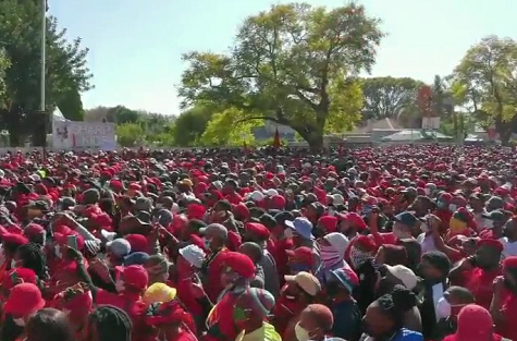 当地时间25日下午,1万多民众(部分未佩戴口罩)聚集在南非国家药品监管机构——南非健康产品管理局(Sahpra)门前举行抗议,称该机构不顾人民死活,迟迟不批准中、俄疫苗进入南非。