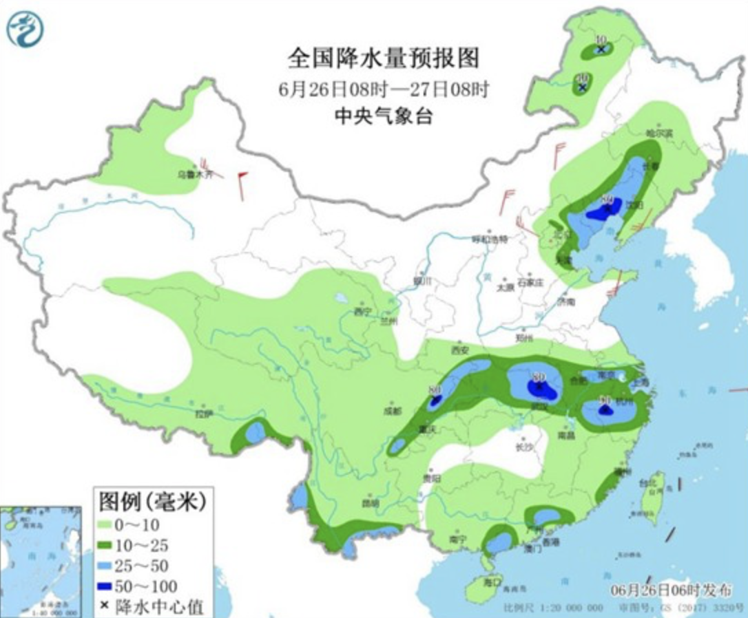 据中国天气网消息,今天起(6月26日)至7月1日,超过10省区市将出现大范围强降雨,局地有暴雨或大暴雨。同时,华北、东北等地未来三天多雷阵雨天气,辽宁等地局地有暴雨。随着降雨铺展,未来三天高温仅出现在湖南、海南等地,但江南、华南仍然是闷热感十足,另外,华北、黄淮高温也将增多。