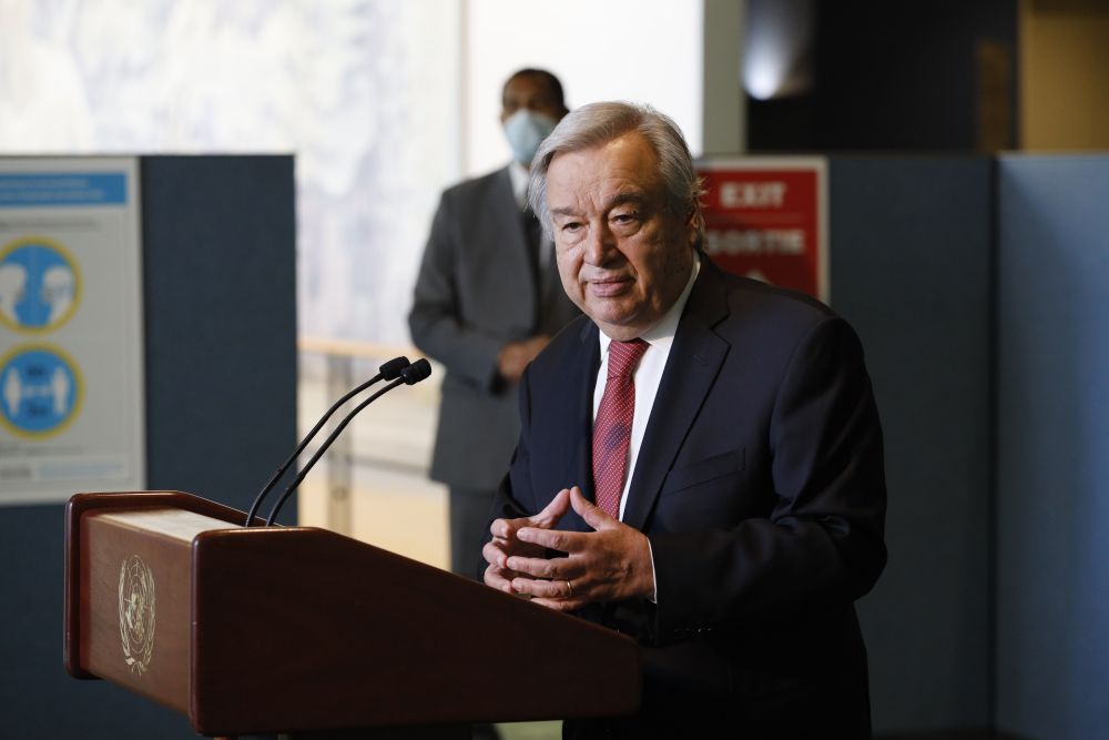6月18日,古特雷斯在位于纽约的联合国总部向媒体发表讲话。新华社记者谢锷摄