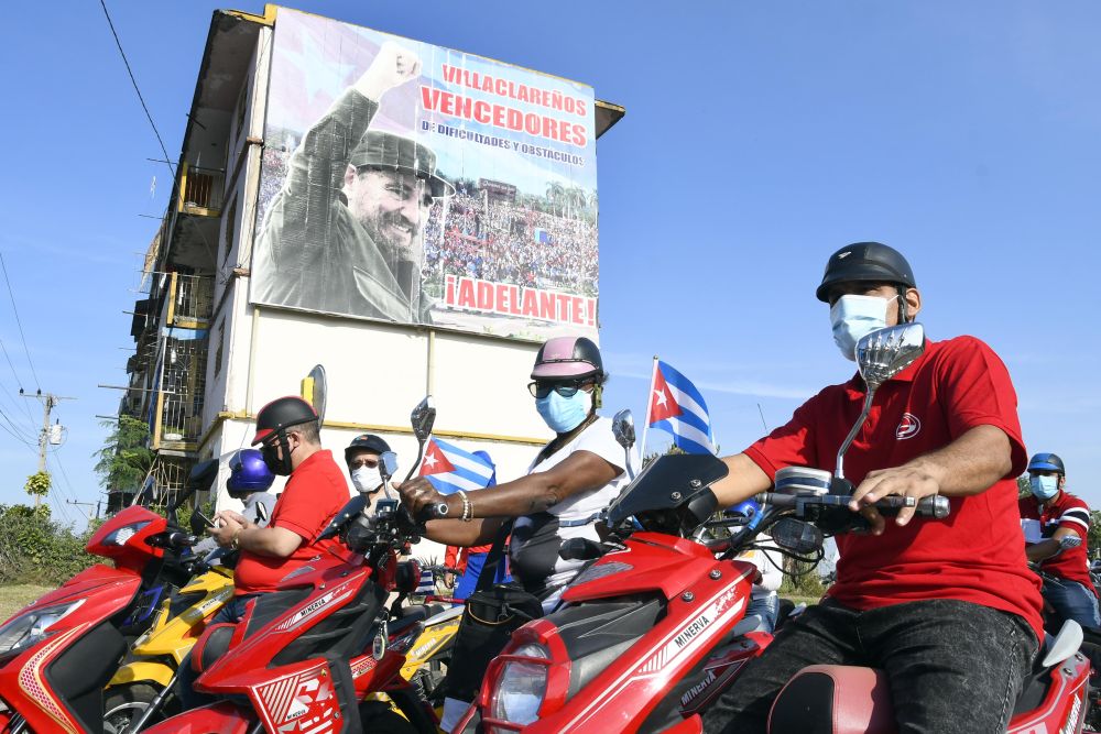 4月25日,古巴多地举行游行活动,几千名参与民众要求美国解除对古巴近60年封锁。新华社发(华金·埃尔南德斯摄)
