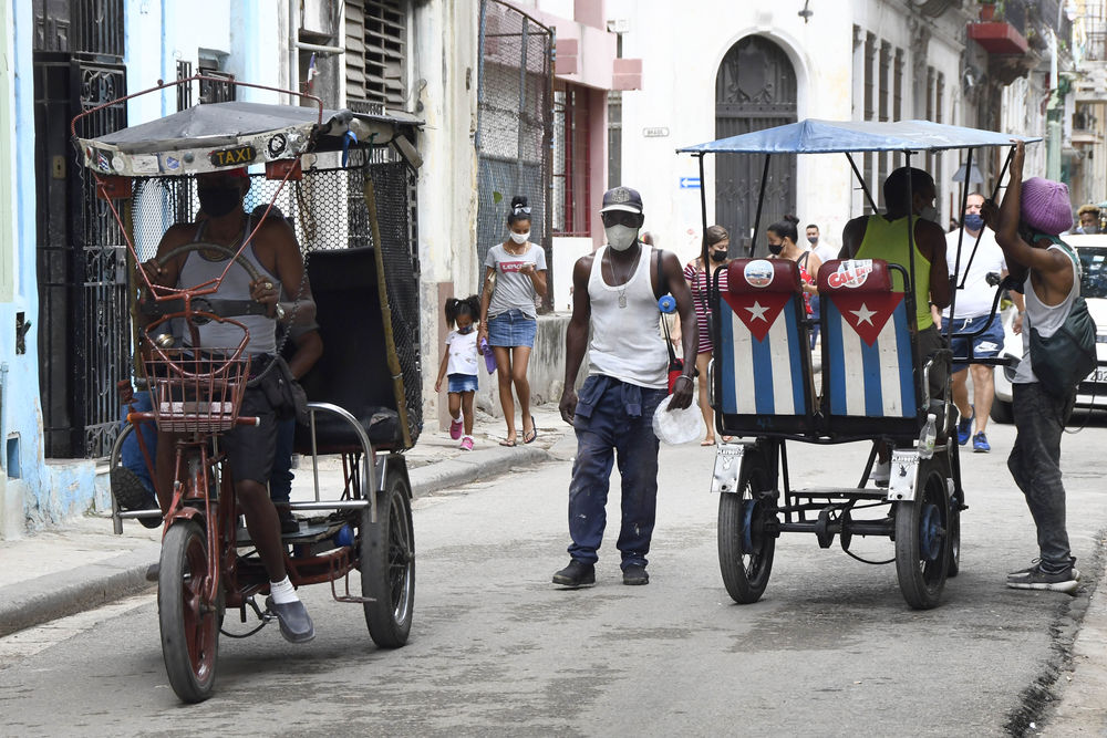 5月21日,人们在古巴首都哈瓦那戴口罩出行。新华社发(华金·埃尔南德斯摄)