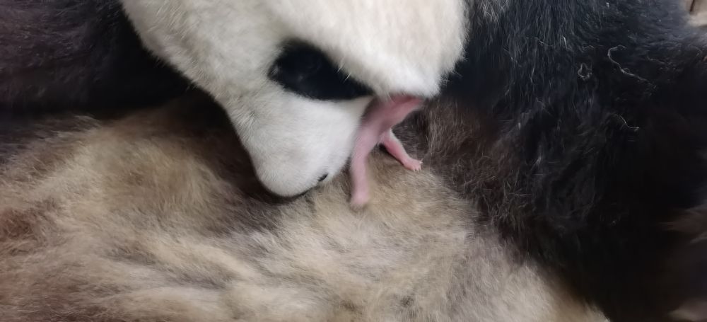 6月26日7时35分,大熊猫“楼生”产下一只雌性幼仔。(秦岭大熊猫研究中心供图 赵鹏鹏摄)
