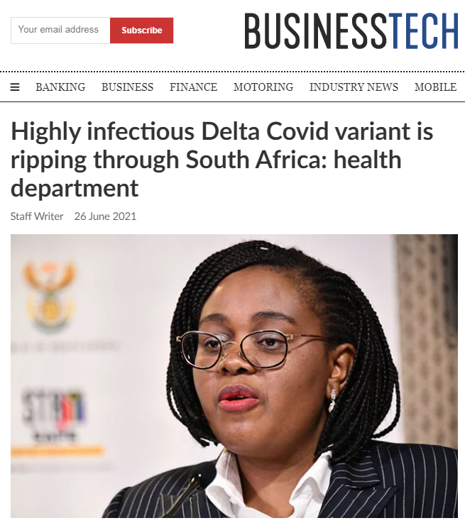 据南非媒体当地时间6月26日报道,南非代理卫生部部长库巴伊·恩古巴内当日在媒体通报会中表示该国正在遭受第三拨新冠疫情冲击,“德尔塔”成为该国病例激增的主因。