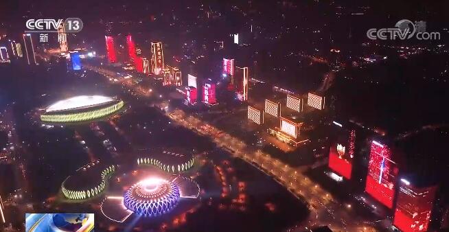 现在我们到达济南东部的奥体中心片区,也是这次灯光秀的主展示区。这里高楼林立、灯光璀璨,极具现代气息和发展活力。