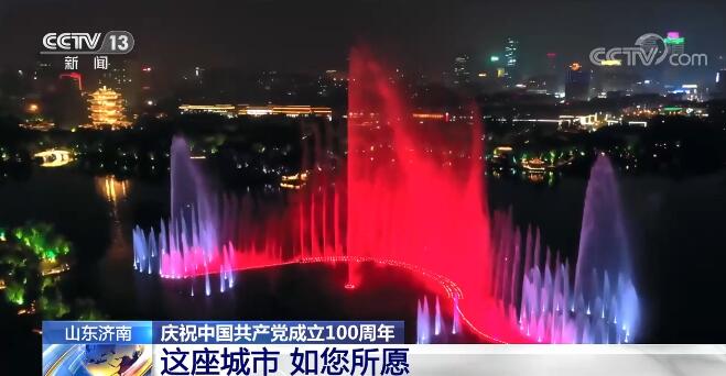 市民 卞志强:走在我们的街头,看着亮起的灯光秀,真的非常震撼;走在泉城的街头,真是幸福满满、信心满满;正值建党100周年,我也祝愿我们的祖国更加繁荣、更加富强,我爱你中国。