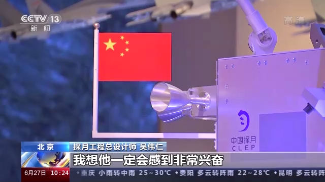 探月工程总设计师 吴伟仁:中华人民共和国的国旗在月球上熠熠生辉,这是代表国家代表我们民族。所以不管哪个国家以后上了月球,或者其他哪一个探测器在月球上,包括我们以后的宇航员上天也看到这面国旗,我想他一定会感到非常兴奋,非常自豪。