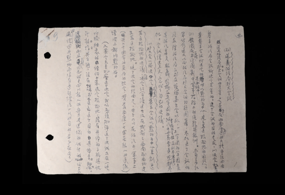 手稿明确记载:“这个会议的目的是在:(一)决定和审查黎平会议所决定的暂时以黔北为中心,建立苏区根据地的问题。(二)检阅在反对五次‘围剿’中与西征中军事指挥上的经验与教训。”