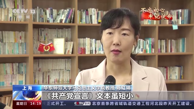 华东师范大学马克思主义学院教授 陈红娟:《共产党宣言》文本虽短小,但却蕴含着一个博大精深的科学理论体系,其基本思想指引着中国共产党人寻求真理、坚定信仰、实现理想。