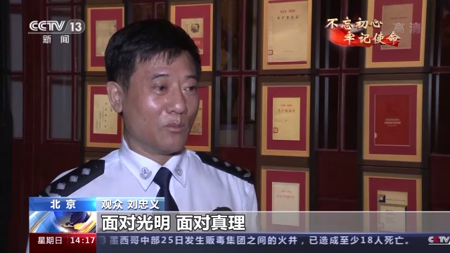 观众 刘忠义:刚才听到这个小故事,他为了追求真理,把墨水都吃进了肚子里,说明他向往光明的这种心情多么迫切,面对光明面对真理,他可以一切的味道都不在意了,只是追求真理。这一个墙面包括整个展馆,好多都是《共产党宣言》不同的版本,原来我看了一些,但没想到有这么多。