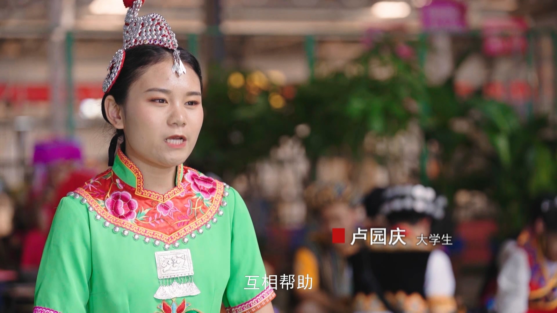 大学生 卢园庆:我是彝族,我们这里各族居民共同生活在一起,互相帮助。我们越来越像一家人,越来越幸福了。