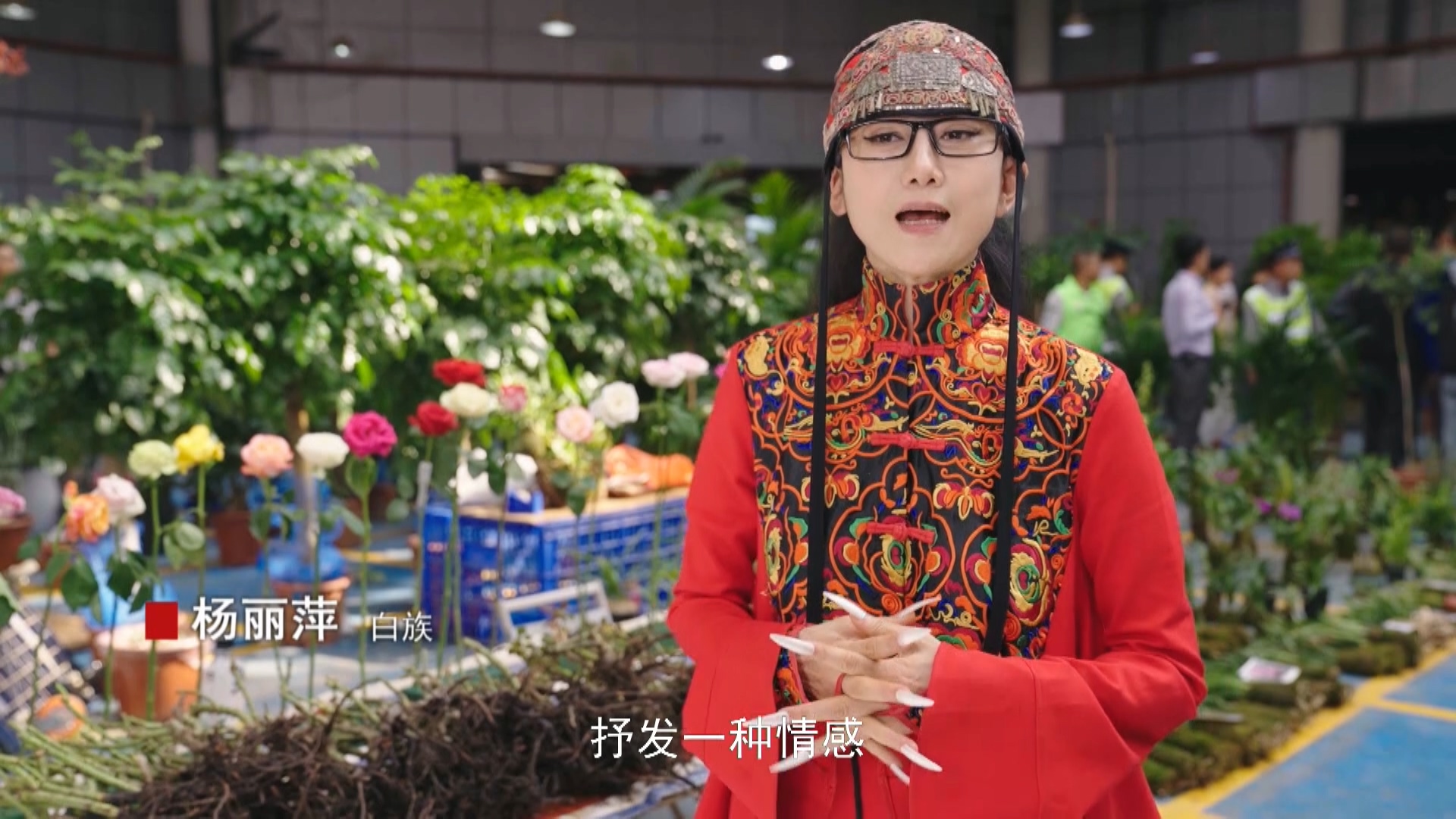 杨丽萍:我特别喜欢花,我觉得云南就是世界的花园。七彩云南,这个太贴切了。今天一来看到好热闹,本来我们少数民族就是能歌善舞,歌舞其实是表达了人们抒发的一种情感。用这种方式来献礼,我觉得特别美好。