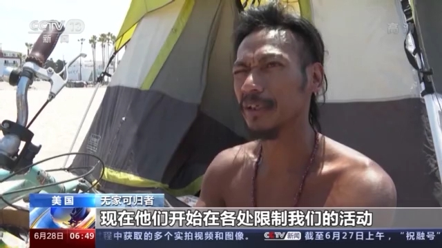 新冠肺炎疫情对美国社会经济带来持续的严重冲击,无家可归者人数激增。美国洛杉矶威尼斯海滩本是各地游客的旅游胜地,如今却挤满了无家可归的人,随之出现的各类问题更是让当地社会陷入困境。