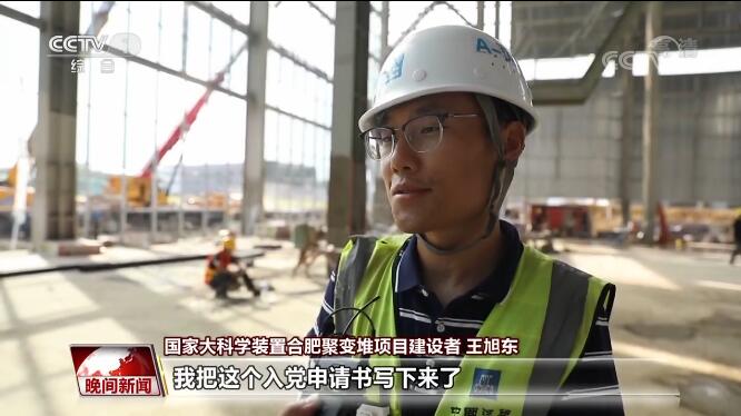 国家大科学装置合肥聚变堆项目建设者 王旭东:我写了入党申请书,还没有入党。去年春节很多党员放弃了休假的机会坚守在工地,和他们度过了一个春节之后,我写下入党申请书来,应该向他们看齐,和他们一起奋斗。