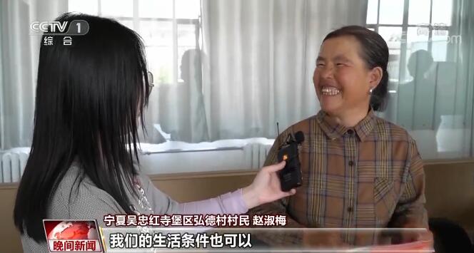 宁夏吴忠市红寺堡区弘德村村民 赵淑梅:我会讲共产党好,黄河水甜。自来水也安上了,这个路也修宽了,风景也好了,生活条件也好了。我心里的感觉就是(感谢)我们共产党,生活一年比一年要强。