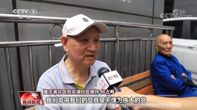 重庆渝北区双龙湖社区居民 何占寿:我们觉得我们的党真是不愧为伟大的党,就拿现在的民生来说,给我最大的体会是安电梯这个事,这是对我们老年人最大的关怀。我是五十五岁搬到这边来住,现在七十几岁了,每回爬九楼我都感到非常费力,买菜我都自己走一百四十五步台阶,每天负载要在十斤重到十五斤重,以前我走个楼梯大概要走十多分钟,现在28秒钟九楼就到了。