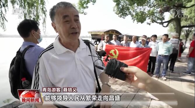 青岛游客 聂培义:我们的党领导中国人民走到100年,走到这一步很不容易,世界上只有中国共产党能够领导人民从繁荣走向昌盛。