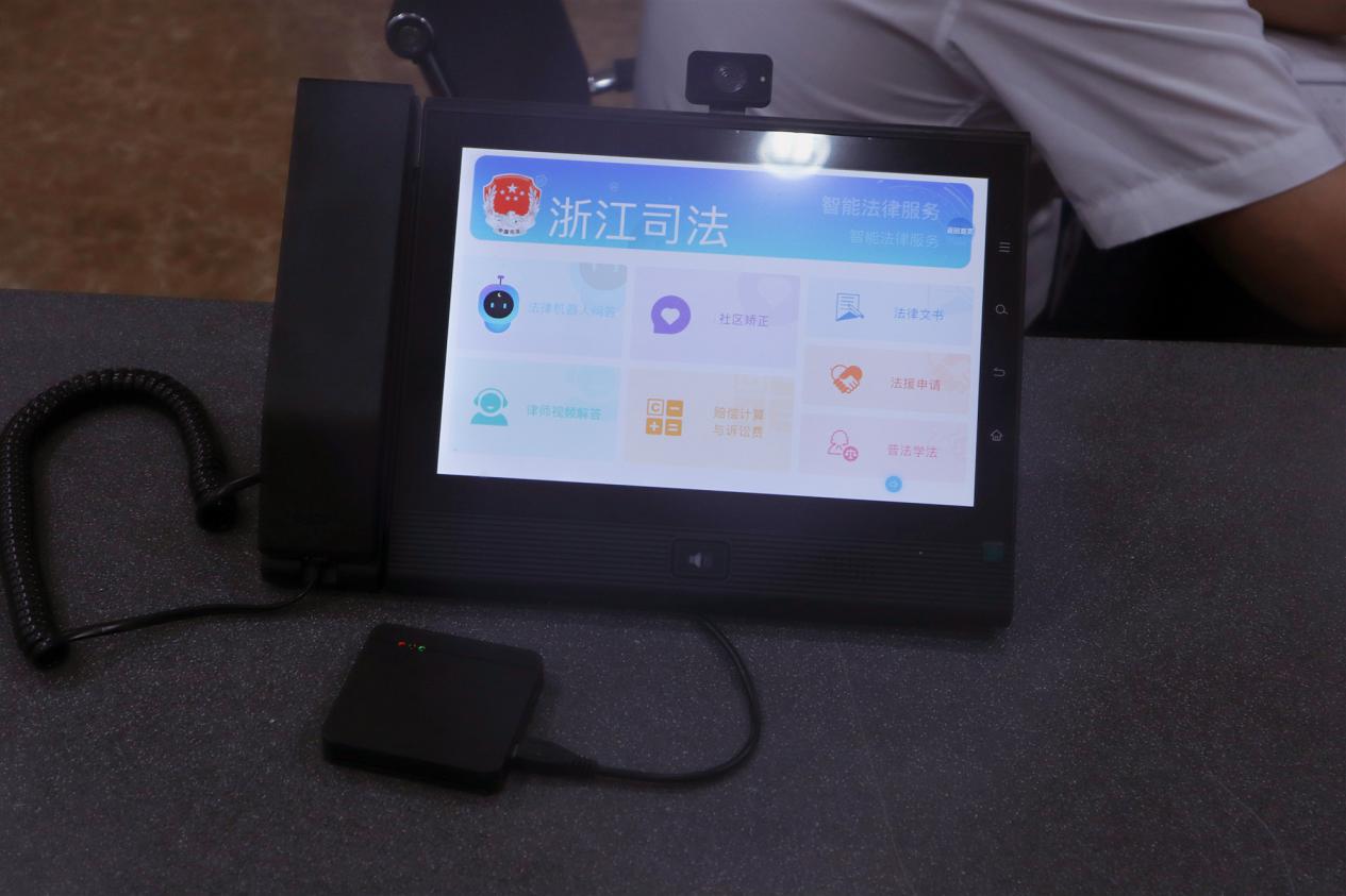 三是设置可视化智能终端。除了在人员密集地区,2019年乌镇率先在各村(社区)便民服务中心放置桌面式可视化智能终端,为周边居民提供远程视频咨询、法律帮助。目前,桐乡市全市已布设法律智能服务终端设备82个,累计访问量突破3万人次。