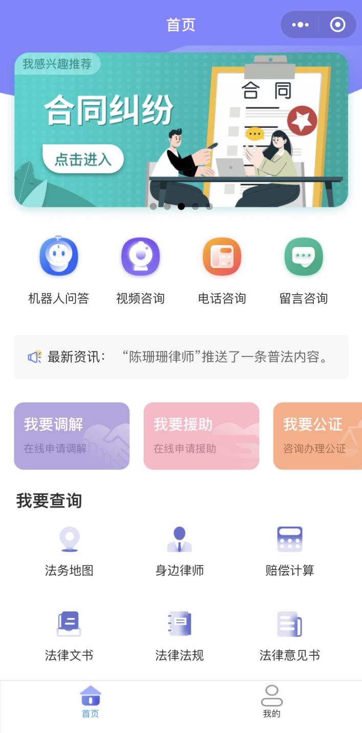 一是开发“云司法”小程序,将人民调解、法律援助、法律咨询、法律宣传等线下重点业务整合至线上,实现人民调解、法律援助的在线申请,在小程序中市民还可以通过手机视频咨询律师相关法律问题。