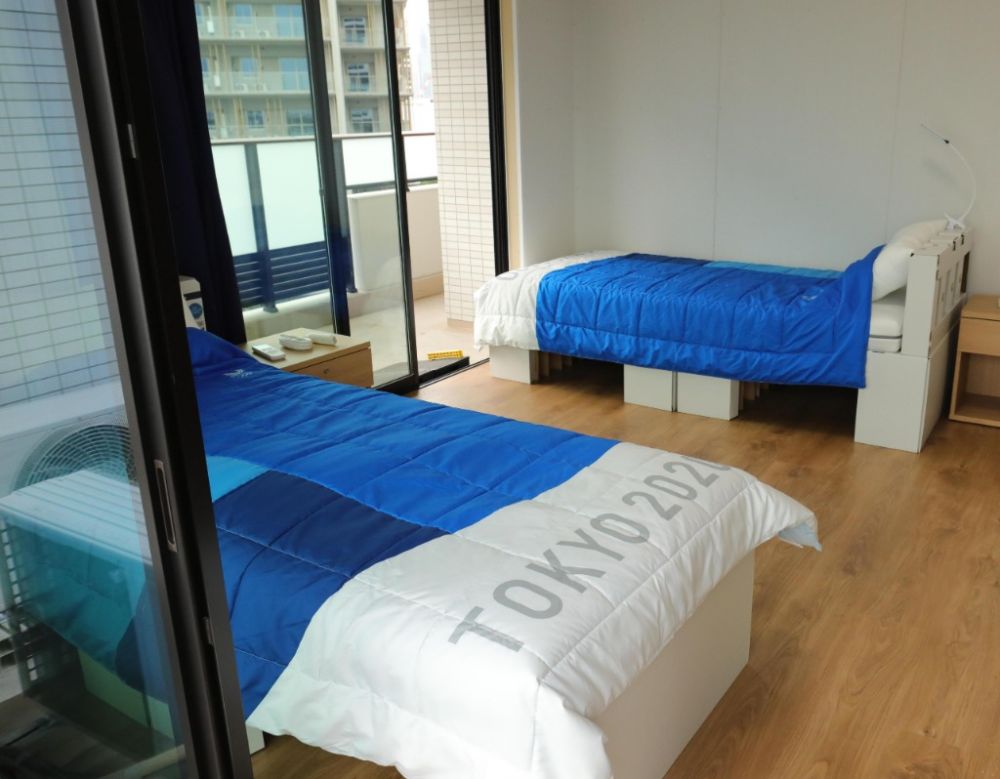 6月20日在东京奥运会奥运村拍摄的双人间。(新华社记者王子江摄)