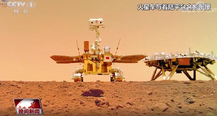 航天科技集团五院天问一号探测器副总设计师 饶炜:我们通过遥测(图像)来看,其实我们现在着陆的位置和我们设计的位置只差三公里,综合来看落得是非常准,控制也非常好。