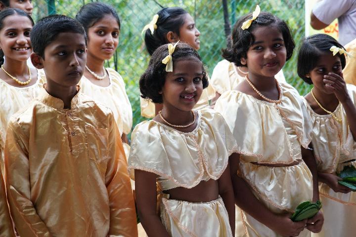 2019年9月21日在斯里兰卡康提拍摄的参加康提北部综合供水工程项目开工仪式的学生。(新华社记者唐璐摄)