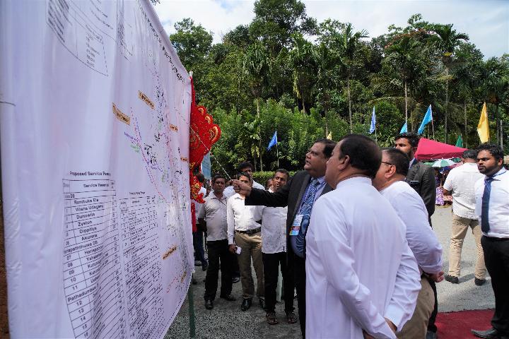 2019年9月21日,在斯里兰卡康提,参加开工仪式的斯里兰卡官员观看供水项目示意图。(新华社记者唐璐摄)