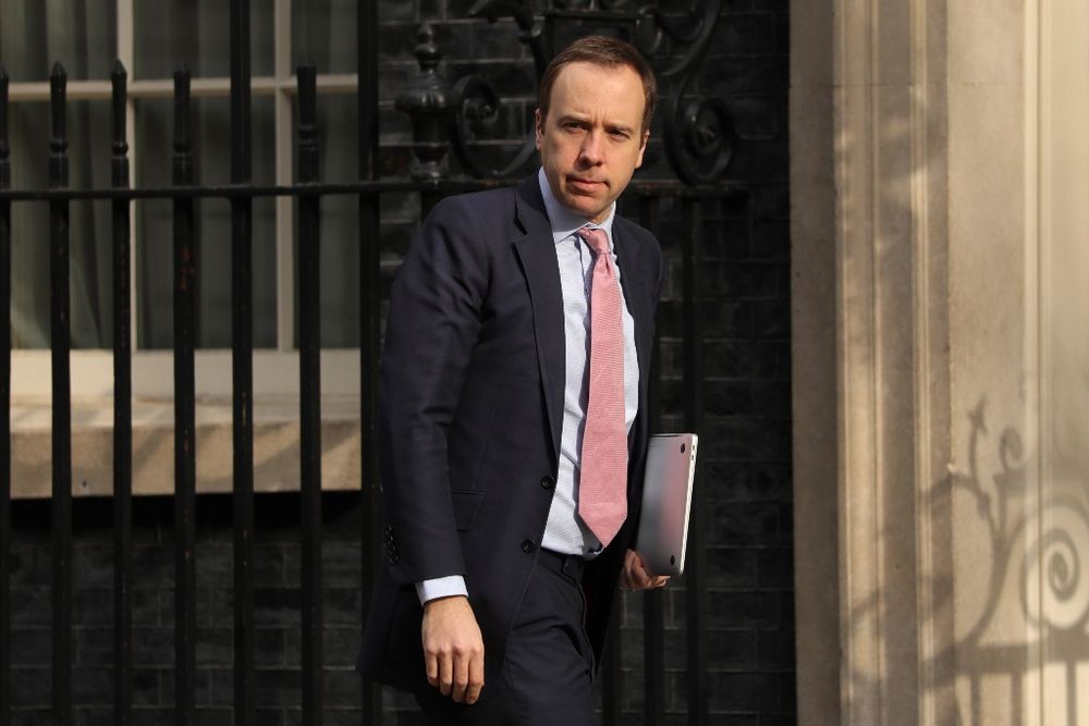 2020年4月8日,在英国伦敦,时任英国卫生大臣汉考克抵达唐宁街。(新华社发,蒂姆·爱尔兰摄)