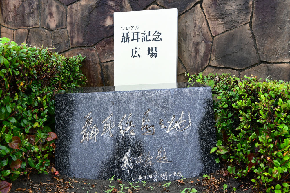 新华社东京6月28日电(记者杨汀 姜俏梅)盛夏时节,在日本神奈川县藤泽市湘南海岸公园,苍翠的卫矛树和清新的海桐花环绕之中,一座“耳”字形纪念碑,面海而立。