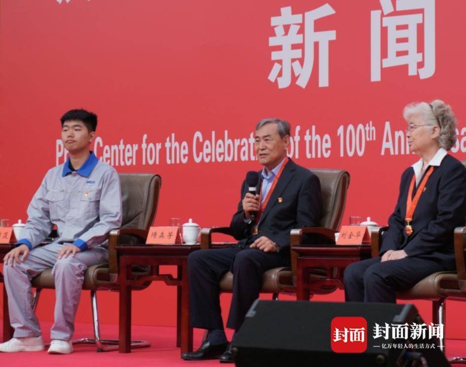 6月28日,庆祝中国共产党成立100周年活动新闻中心举行中外记者见面会,中国科学院院士隋森芳(中)成为受邀嘉宾。摄影 川报集团特派记者 卢荡
