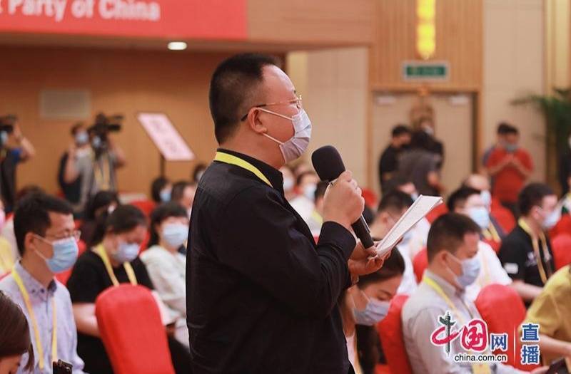封面新闻记者在中外记者见面会上提问。图片来源 中国网