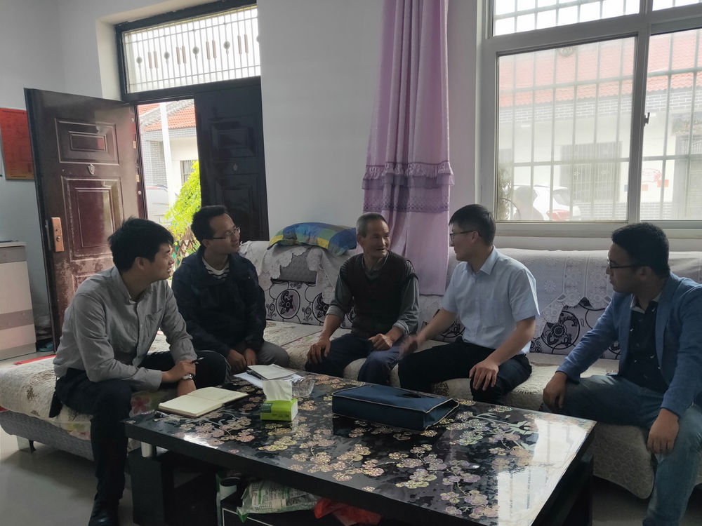 陆星(右二)走访慰问贫困户李学。(受访者供图)