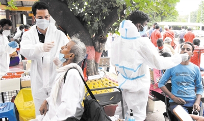 图为6月23日,人们在班加罗尔接受新冠检测。新华社发