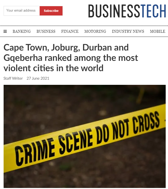 据南非媒体当地时间6月28日报道,墨西哥公共安全和刑事司法委员会公布了其最新的全球50个最暴力城市排名,南非四个城市名列其中,且排名正在逐年靠前。