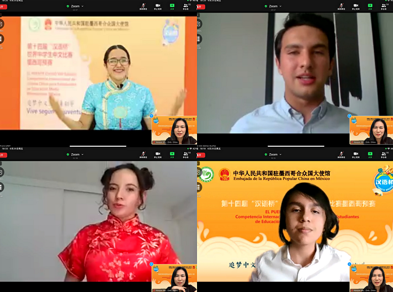 当地时间6月25日,第十四届“汉语桥”世界中学生中文比赛墨西哥赛区决赛在线上举行。比赛由三部分组成,分别为主题演讲、汉语知识问答和才艺表演。经过激烈角逐,尤卡坦自治大学孔子学院选送的莎拉获冠军。