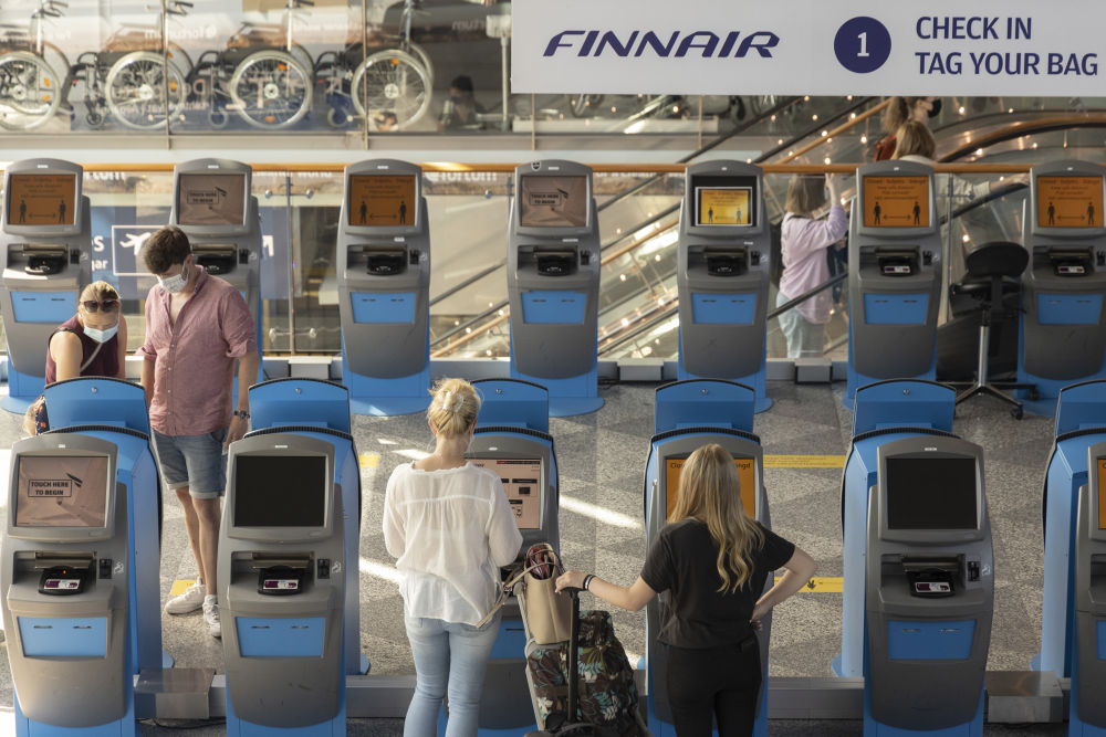 6月21日,旅客在芬兰赫尔辛基机场办理自助值机手续。(新华社发,马蒂·马蒂凯宁摄)
