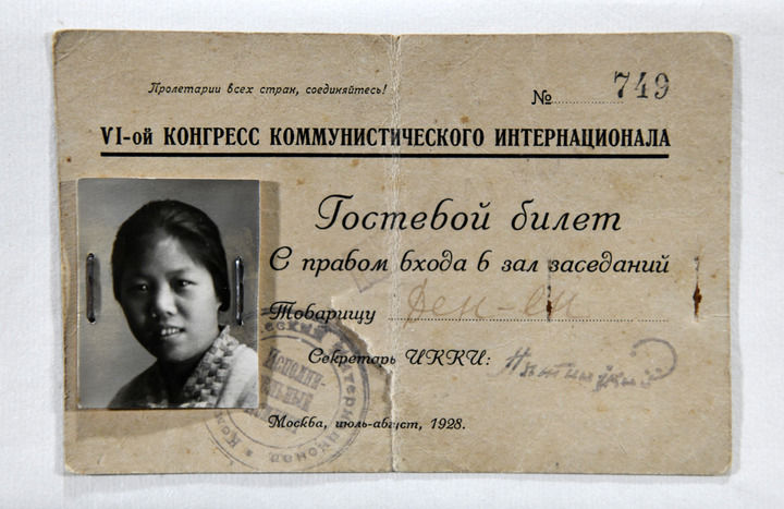 这是1928年邓颖超参加共产国际第六次代表大会的列席证(2020年12月23日摄)。新华社记者 李然 摄