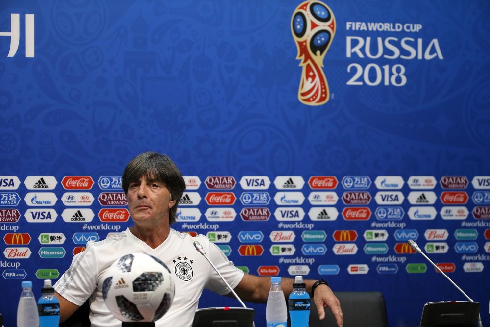图为2018年俄罗斯世界杯,勒夫在新闻发布会上。新华社记者李明摄