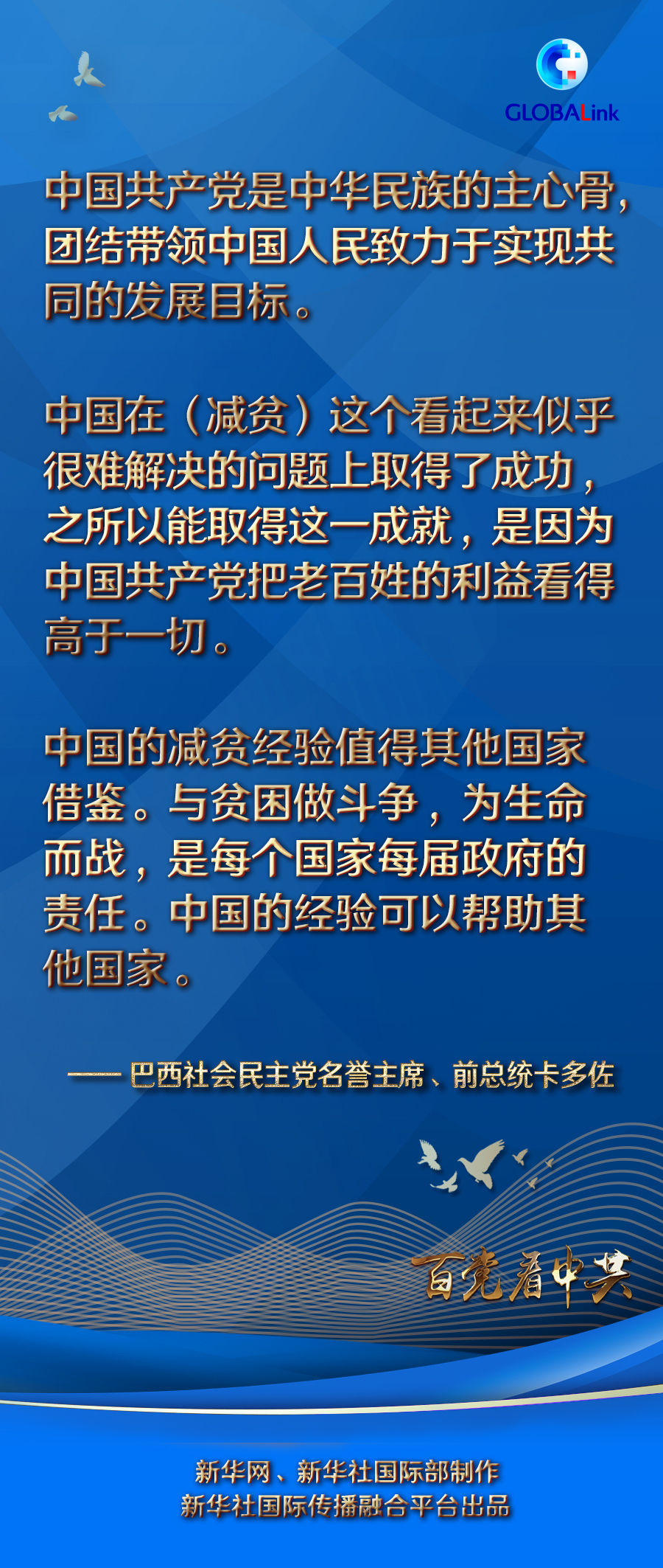 “中国在(减贫)这个看起来似乎很难解决的问题上取得了成功,”卡多佐说,“之所以能取得这一成就,是因为中国共产党把老百姓的利益看得高于一切。”