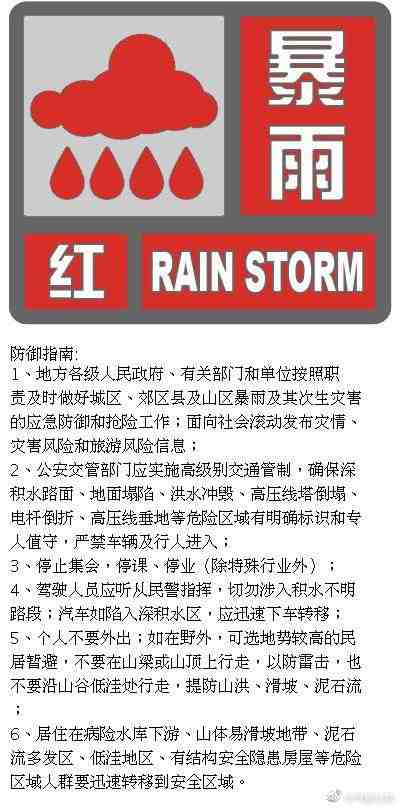 2021年6月30日21时51分,北京升级发布暴雨红色预警信号。预计,当前至23时,北京市大兴区榆垡镇,庞各庄镇,魏善庄镇,礼贤镇,青云店镇,安定镇,采育镇,长子营镇,天宫院街道将出现小时雨量超过100毫米的强降水,请注意防范。(总台记者 王胜东 张景 邓煜洲)