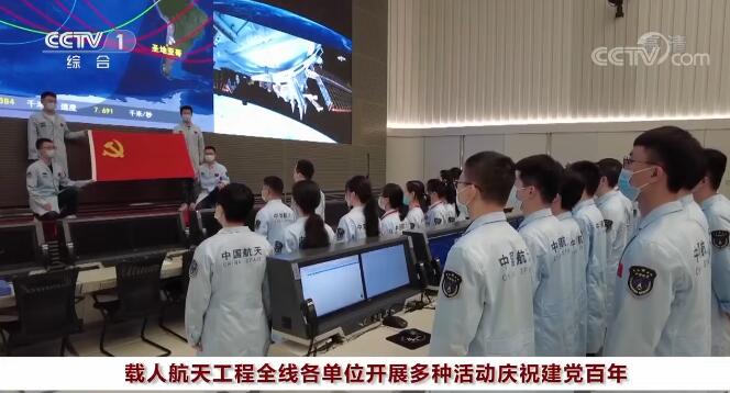 “七一”前夕,从大漠戈壁的发射场到大洋深处的远望船,从联通天地的航天城到天南海北的测控点,从任务总指挥部到科研生产一线,再到幕后奉献的保障单位,正在执行神舟十二号飞行任务的载人航天工程全线各单位,开展重温入党誓词、重访航天遗迹等主题活动,各单位注重发挥党组织的战斗堡垒和共产党员的先锋模范作用,让鲜红党旗在重大工程建设一线高高飘扬。