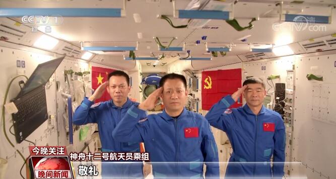 神舟十二号航天员乘组:祝伟大的中国共产党生日快乐!敬礼!