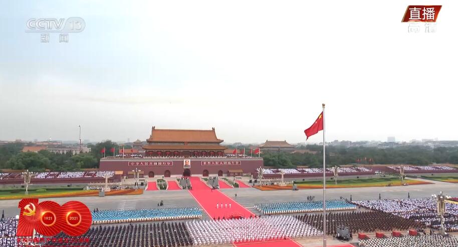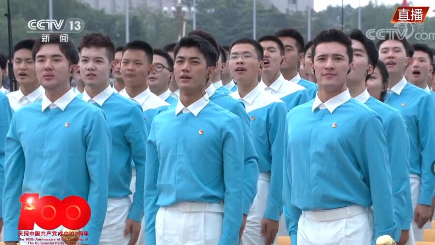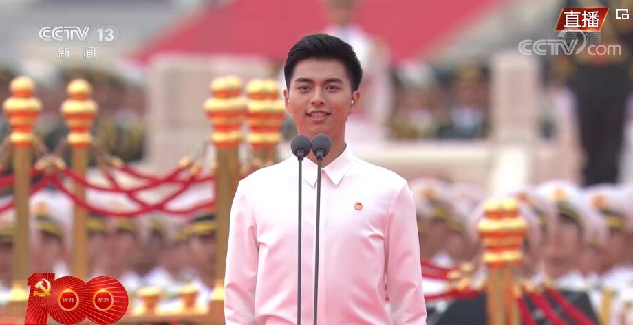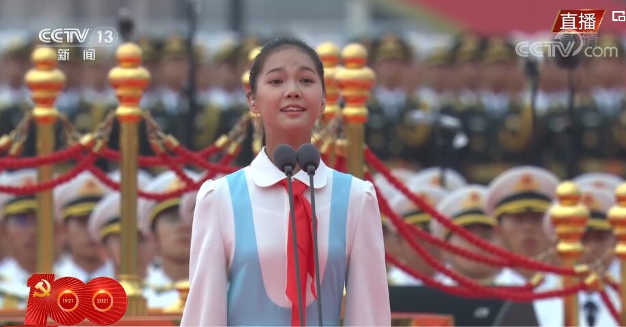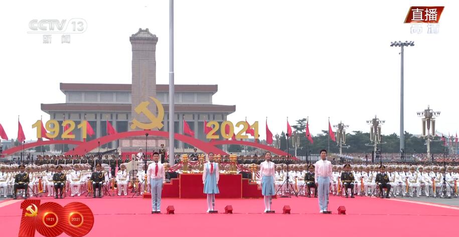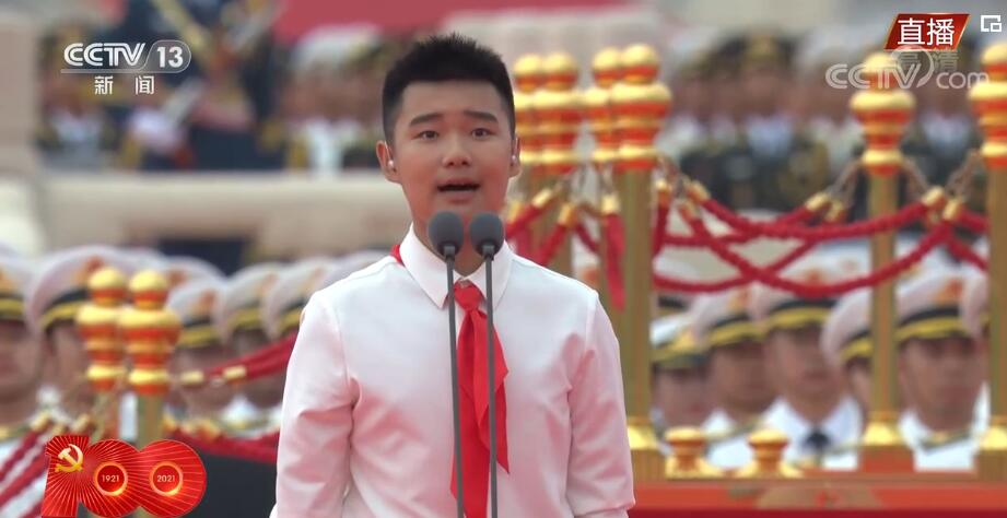 央视网消息:7月1日上午,庆祝中国共产党成立100周年大会在北京天安门广场隆重举行。上午8时15分左右,一群穿着白衬衣、蓝下装的共青团员和少先队代表集体在天安门广场前献词:“今天我们站在天安门广场,紧贴着祖国的心房;今天我们歌颂人民英雄的荣光,见证如他们所愿的梦想;今天我们向党致以青春的礼赞——走过百年、风华正茂的中国共产党。”