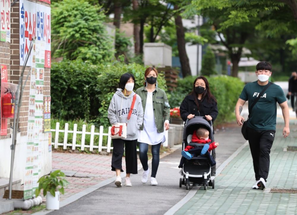 5月21日,戴口罩的市民走在韩国首尔的街道上。(新华社记者王婧嫱摄)