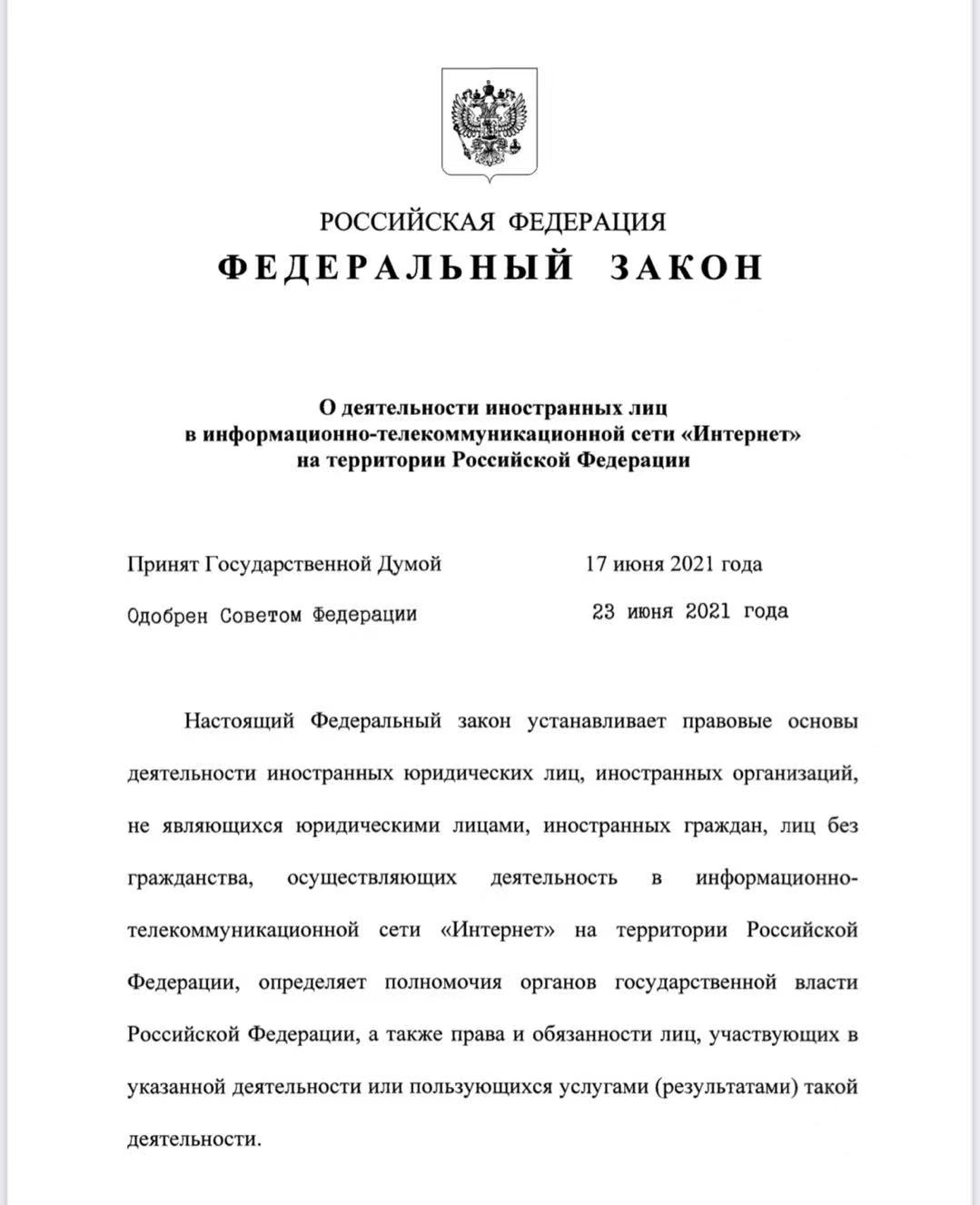 7月1日,俄罗斯总统普京签署联邦法律,要求大型外国互联网公司须在俄罗斯设立代表处。根据这份法律,凡是在俄罗斯拥有50万以上订阅用户的互联网公司,都必须在俄罗斯设立分支机构、代表处或者子公司,以便代表母公司同俄罗斯的网络监管部门进行沟通。托管服务提供商,广告运营商以及其他网络信息发布商也都须遵守这一规定。此外,上述外国互联网公司必须在俄联邦通信管理局官网上注册账户,通过这一账户同俄罗斯的相关部门保持沟通。