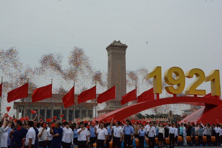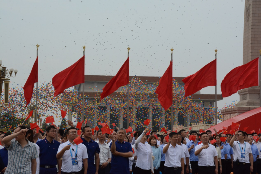 7月1日,伴随庆祝大会结尾的欢呼声,10万个五彩斑斓的气球腾空而起,形成一道壮观的色彩幕墙。看着天空架起这道彩虹,很多人兴奋之余也在好奇,这么多气球从哪来?飞到哪去?它们又是如何同时升空的呢?