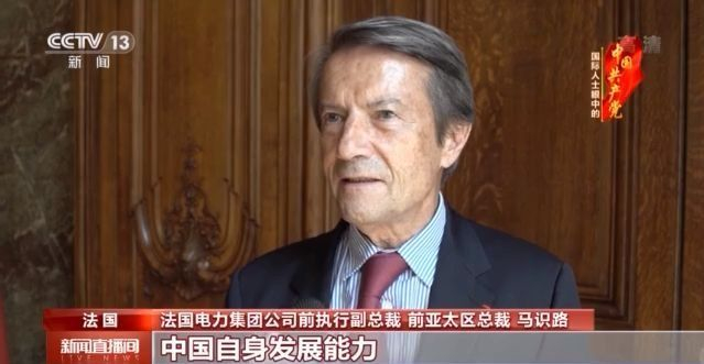 法国电力集团公司前执行副总裁 前亚太区总裁 马识路:中国自身发展能力是一个具有历史意义的现象,世界上从来没有任何一个地方,在过去任何一段历史中出现过这种现象。中国发展的成功也是中国共产党(执政)的成功。