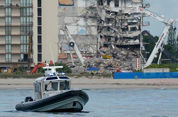 当地消防官员称,证据表明部分结构出现扩张和移动现象,可能导致公寓楼进一步坍塌,为保证安全,搜救人员已撤出现场。(央视记者 刘骁骞)